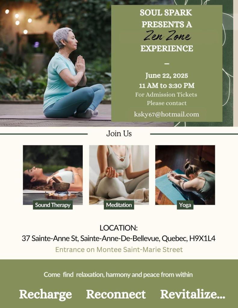 A day retreat where three seasoned practitioners will guide us through their modalities; yoga, breathwork, somatic therapy & sound meditation in a serene & spiritual environment in beautiful Ste. Anne de Bellevue.